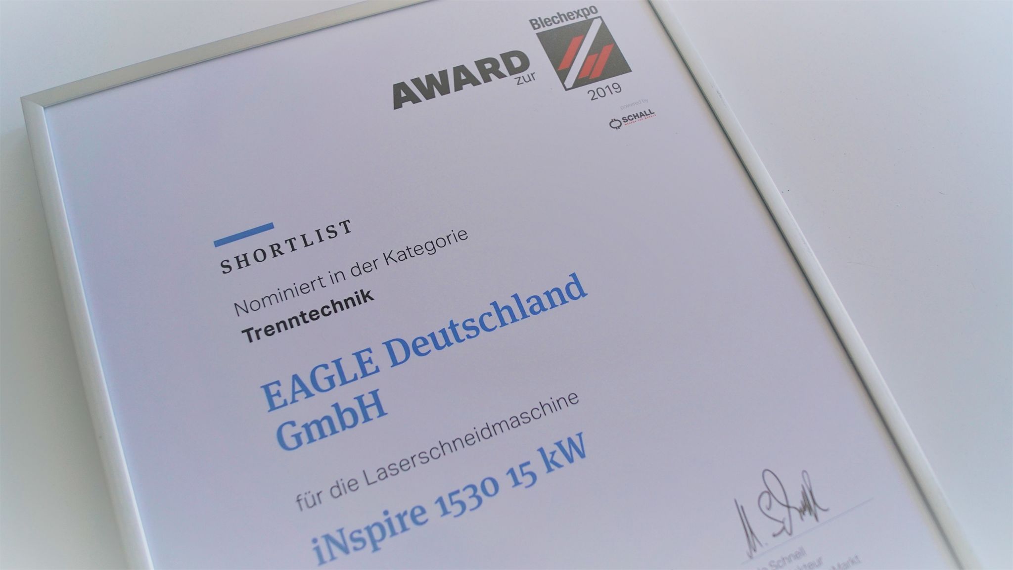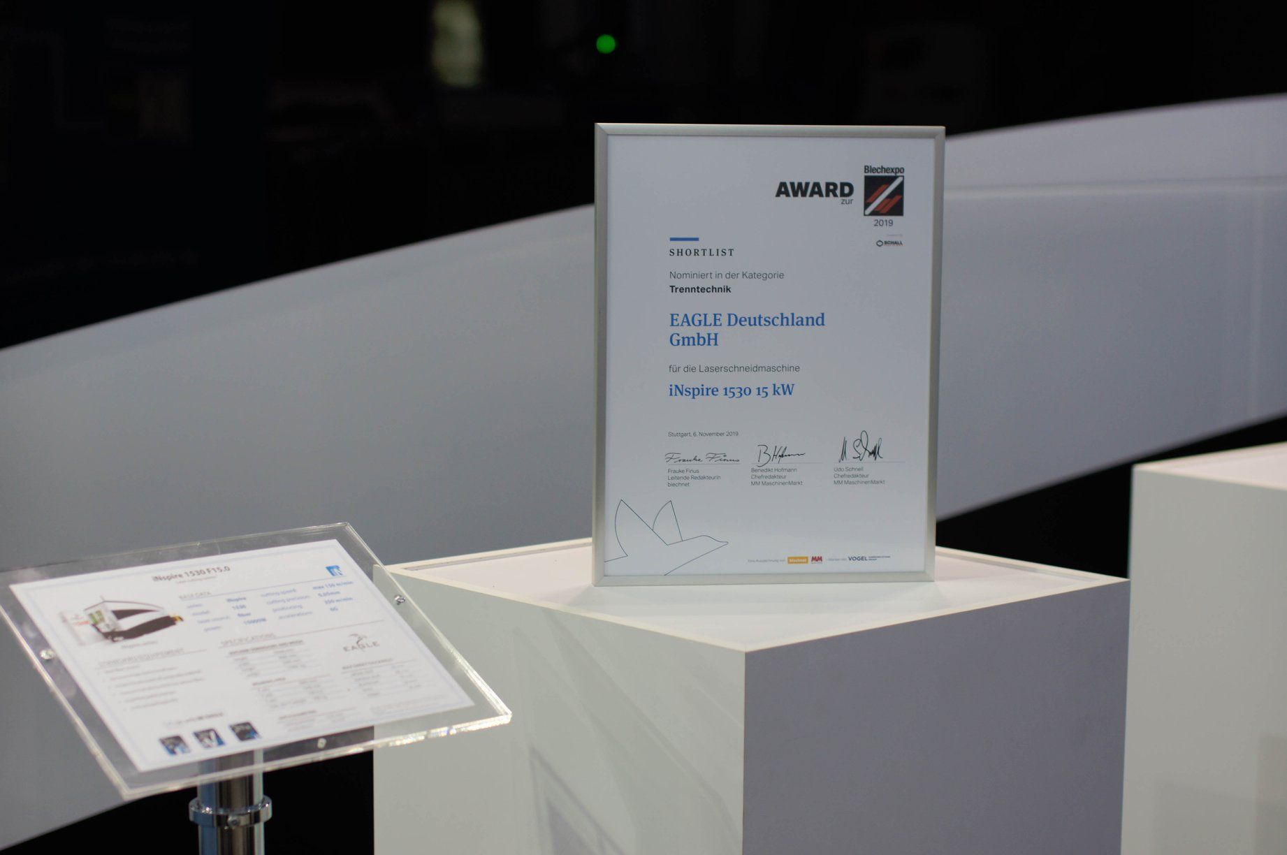 Concerning the category separation technology Kjellberg could convince the jury in front of EAGLE laser cutting machine "iNspire 1530 15 kW.