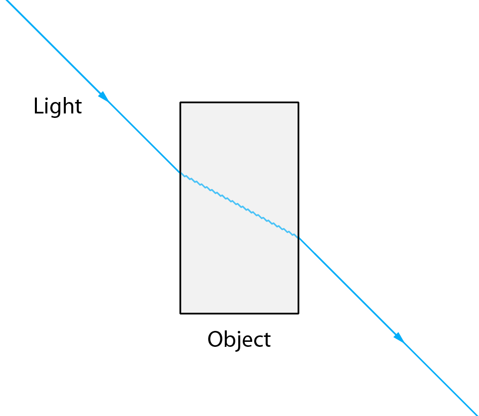 Wenn man an Lichtbrechung denkt, stellt man sich normalerweise vor, wie Licht aus der Luft in Glas oder Wasser eintritt und seinen Winkel ändert. Dies geschieht, weil sowohl Glas als auch Wasser dichter als Luft sind und einen höheren Brechungsindex haben, sodass sich das Licht beim Durchdringen langsamer ausbreitet. Diese Geschwindigkeitsänderung verursacht die Winkeländerung. Wenn das Licht das dichtere Medium verlässt und wieder in die Luft eintritt, gewinnt es an Geschwindigkeit und der Winkel kehrt zu seinem ursprünglichen Wert zurück, wie in der Abbildung zu sehen ist: