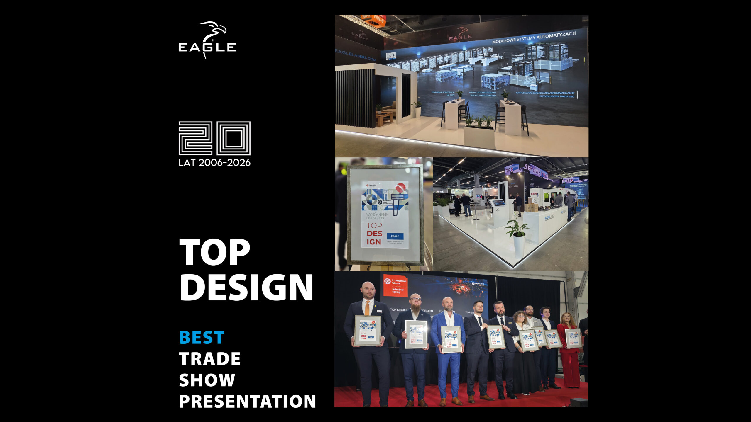 Eagle Lasers has been honored with the award for the best trade fair stand at this year’s Przemysłowa Wiosna STOM 2026, held from March 24–27 at Targi Kielce. The award highlights the stand’s unique concept, combining modern aesthetics with a clear presentation of advanced technologies.